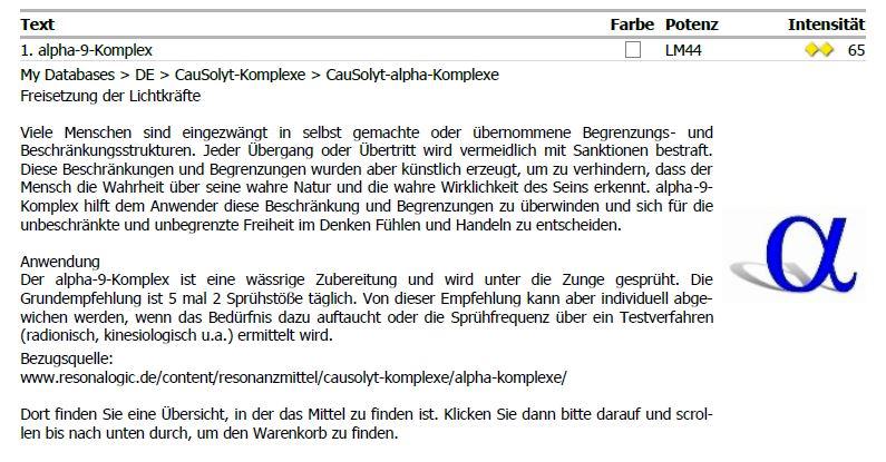 Hier im Beispiel ist es der alpha-9-Komplex aus der Rubrik Causolyt-alpha-Komplexe