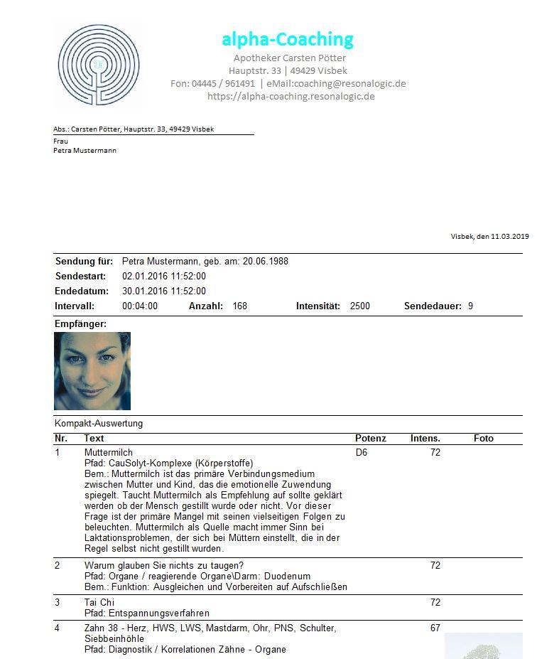 Die radionische Auswertung enthält das Ergebnis des Vergleichs zwischen dem untersuchten System und den ausgewählten Datenbanken. Da alles, was existiert, eine Identität und eine Adresse besitzt, reicht es, von einer Erscheinung, sei es als Mensch, Pflanze, Tier, Haus usw. ein Bild zu erstellen, und sich auf diese Weise mit seinem Energiefeld zu verbinden und dieses Feld mit entsprechenden Vergleichsdaten in Verbindung zu bringen. So entsteht eine Auswertung, bei der alle gefundenen Ergebnisse ANALOG zur diesen Erscheinungen (Entitäten) in Bezug stehen.