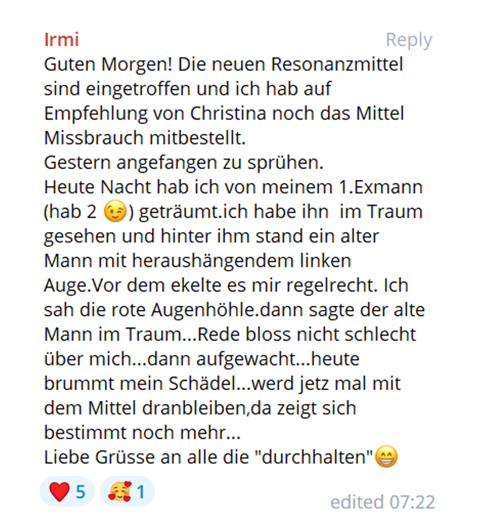 Missbrauch ist Ausdruck von kompensierter Erniedrigung und Verachtung, die über Macht im Außen Auswirkungen hat. Sie beruht zwar auf einem simplen Prinzip, ist aber nur auf dem Hintergrund verschiedener Ebenen verständlich. Wer die Auswirkungen von Missbrauch bei sich selbst klären will, sollte die wechselseitigen Abhängigkeiten in diesem Drama erkennen, seinen Anteil daran anschauen und ihn transformieren. Das Resonanzmittel Missbrauch unterstützt den Anwender, diesen Hintergrund zu klären und damit unwirksam zu machen.