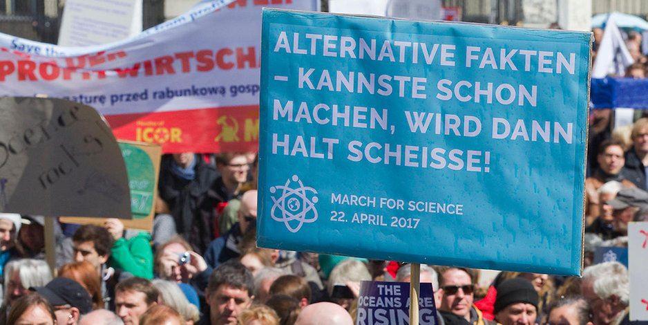 In einem Interview mit CORRECTIV sagt Tanja Gabriele Baudson, Bildungsforscherin und Mitiniatorin des „March for Science“ wörtlich: „Für uns ist es eine Veranstaltung für die Freiheit der Wissenschaft, gegen Populismus und gegen alternative Fakten. Wenn Politiker Entscheidungen treffen, ist es besser, wenn sie auf gesicherte wissenschaftliche Befunde zurückgreifen als auf gefühlte Wahrheiten“ (…) und „In Deutschland hat das Wissenschaftsbarometer 2016 gezeigt, dass erschreckend viele Menschen der Aussage zustimmen, dass wir zu sehr der Wissenschaft vertrauen und zu wenig den Gefühlen oder dem Glauben“ (…) „Wenn alternative Fakten an Bedeutung gewinnen, ist das eine existenzielle Bedrohung für die Wissenschaft.“
