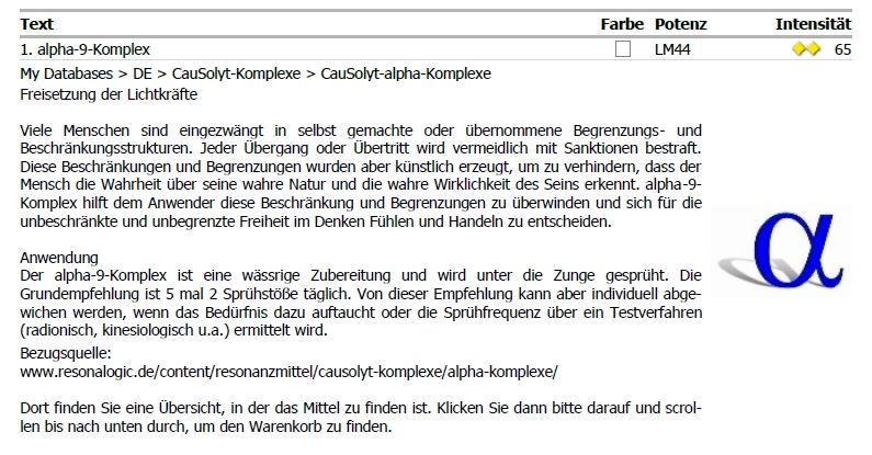 Hier im Beispiel ist es der alpha-9-Komplex aus der Rubrik Causolyt-alpha-Komplexe