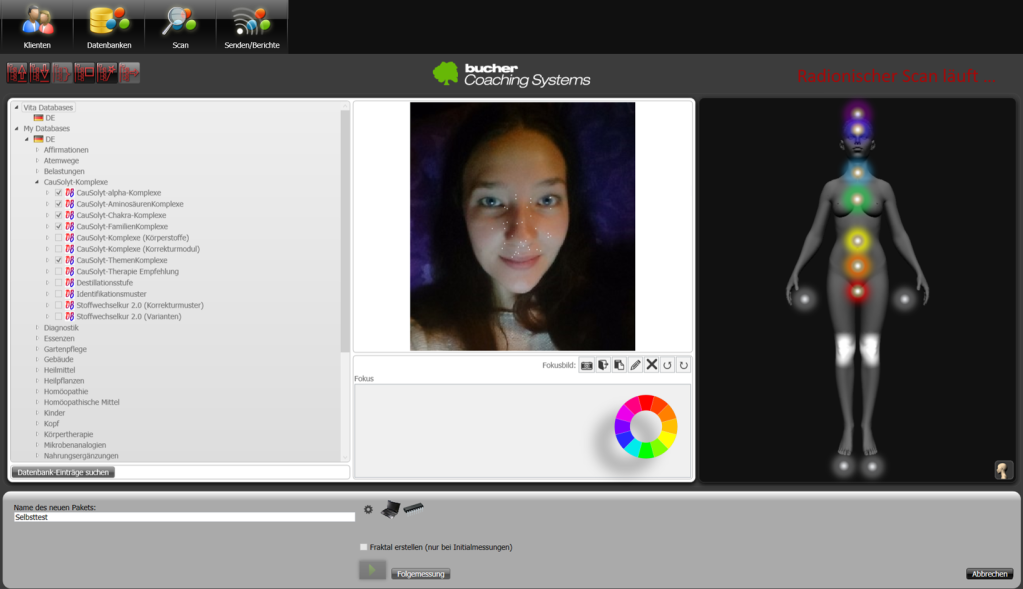 Der Farbwahltest beruht auf dem Prinzip der Mustererkennung und wird im Anschluss über ein radionisches Messverfahren ausgelesen. Ähnlich wie sich ein WLAN-Router über die IP-Adresse mit einem Endgerät koppelt, wird hierbei eine Verbindung zu deinem universellen Informationsspeicher aufgebaut. Aus diesem Feld werden entsprechende Informationen gelesen und decodiert. Dazu verwenden wir das Radionik-System "vitaCoach" von der Firma Bucher-Coaching.