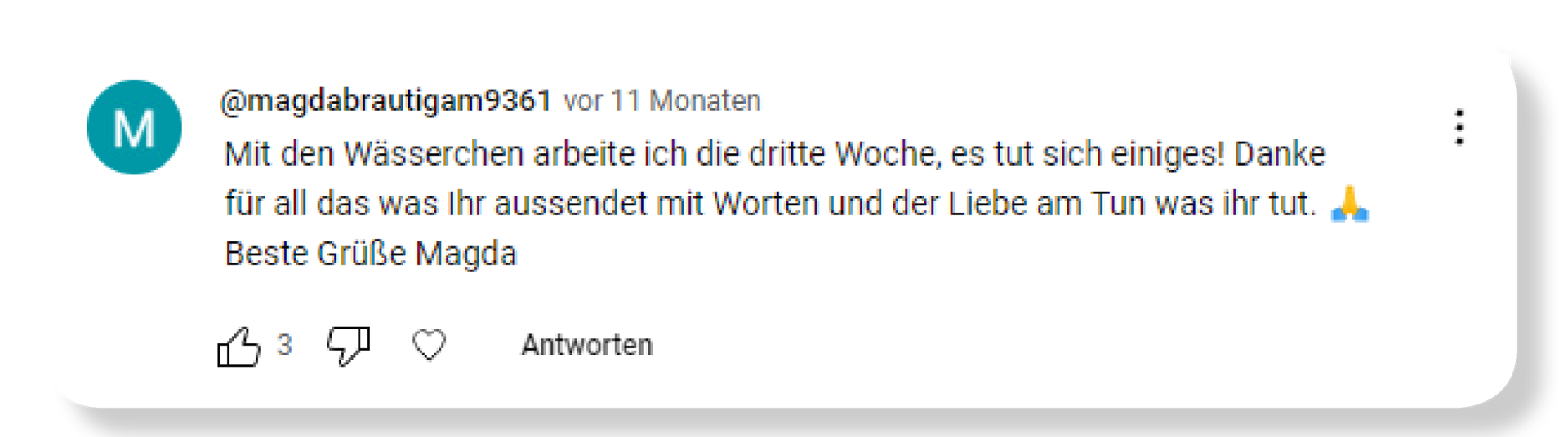 Ich war wieder erstaunt, wie der Farbtest meine anstehenden Themen und die noch nicht ganz bewältigten Themen erkennt. Ich empfehle den Farbtest weiter, da er eine gute Einstiegsmöglichkeit ist, um mit den Resonanzmittel zu arbeiten.