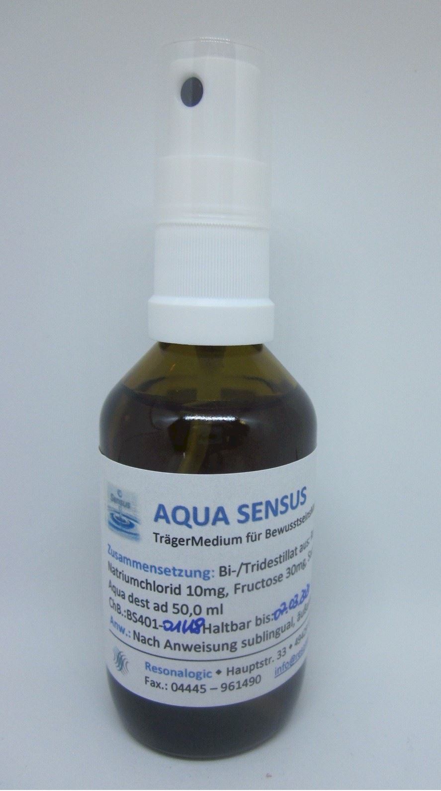 Bei der Suche nach einem Universalträger fiel der Fokus auf alpha-Quarz. SiO2 ist der Informationsträger schlechthin, wie das an der Informationstechnologie deutlich wird. Der moderne Computer ist ohne diesen Stoff nicht denkbar. Dieser Kristall wird bei der Herstellung von Aqua Sensus einer Mazeration unterworfen und in den Stufen 2 und 3 destilliert. Die Destillation gehört zu den spagyrischen Aufschlussprozessen, was einer Zeitableitung entspricht. In diesem Zusammenhang repräsentiert die Stufe 2 das Alarmsystem (Psyche) und die emotionellen Komponenten des Anwenders und die Stufe 3 die Denkmuster, die wesentlichen Anteil an der Störungsgeschichte und dem Störungsverlauf im Menschen haben. Um den Durchtritt der gespeicherten Informationen in das Hirn zu ermöglichen wird das Destillat mit einer Kupplerlösung versehen, die aus Kochsalz und Monosachariden besteht. Diese Strukturen fungieren als Raumvektoren und Vehikel für lipophile Membranen. Wasser allein ist dazu aus naheliegenden Gründen nicht in der Lage. Als weitere Besonderheit von Aqua Sensus ist seine Polarität zu nennen. Der Träger ist im Auslieferungszustand unpolar und energetisch komplett neutral. Wenn er in die Hand genommen wird, testen JA und NEIN kinesiologisch gleichermaßen stark. Das ändert sich erst in dem Augenblick, wenn das Trägermedium durch Zuschreibung beschrieben und programmiert wird. Dabei spielt es keine Rolle, auf welche Weise die Übertragung vorgenommen wird. Aqua Sensus speichert nicht nur alle im übertragen Informationen, sondern lässt sich auch beliebig aktualisieren.